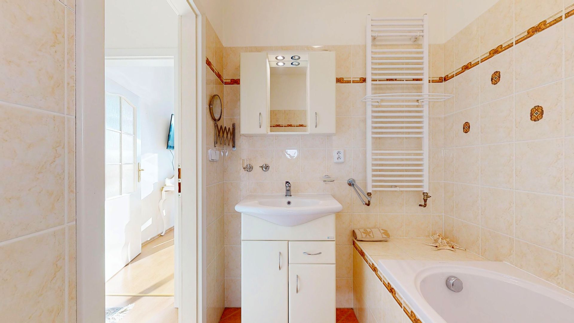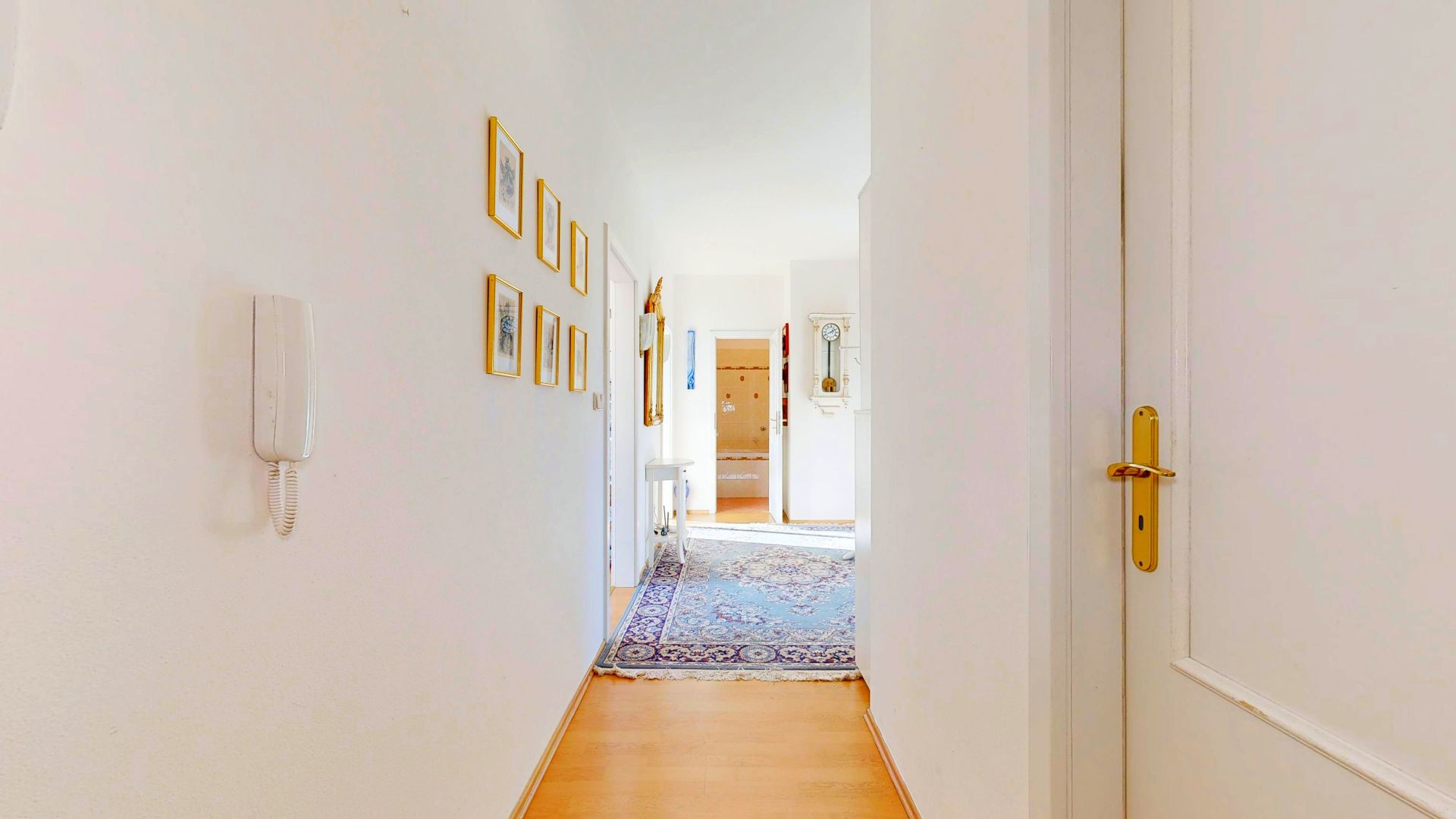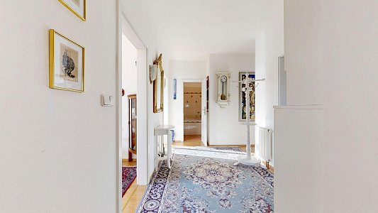 Hned u zádveří bytu se nachází praktická šatna, která poskytuje dostatek úložného prostoru. Prostorná hala nabízí samostatný vstup do všech místností, díky němuž je zajištěno pohodlné a praktické uspořádání a bezproblémové užívání.