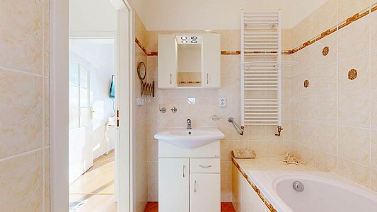 Velkou výhodou jsou dvě koupelny s WC, které ocení nejen rodiny. Terasy s orientací na SV a JZ poskytují ideální prostor pro relaxaci a užívání si slunečných dní.