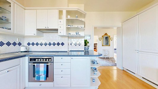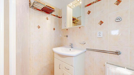 K bytu patří také zděný elektronicky zabezpečený sklep o výměře 4 m2, který se nachází v 1. NP domu.