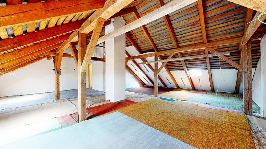 Podkroví (3 NP)-nabízí možnost dobudování dalšího bytu o dispozici 2 až 3+1, což zvyšuje potenciál nemovitosti.