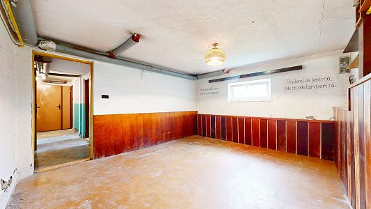 1 PP s výškou stropu 2,2 m -celý dům je podsklepený, přičemž sklep je částečně nad zemí, což zajišťuje dostatek denního světla,