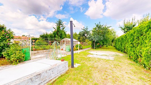 Na pozemku se nachází studna, ovocné stromy, keře a menší kamenný sklep pro uskladnění zeleniny. Nechybí ani skleník, který ocení každý zahrádkář. A také místo pro bazén pro osvěžení.